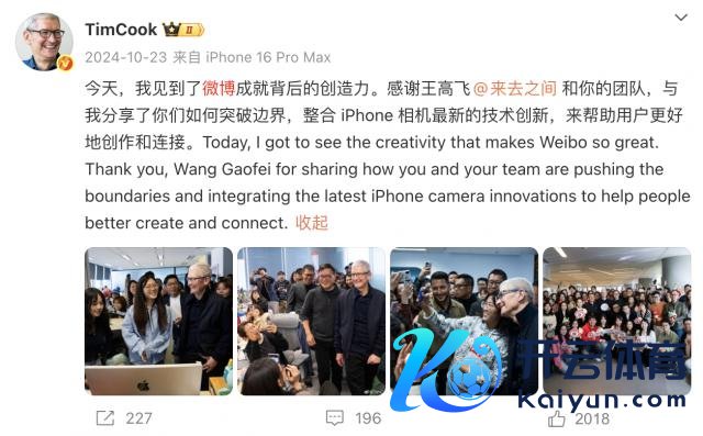 也曾自豪的苹果,不通畅任何外交收罗,但如今也已深度布局微信、微博、小红书等平台,甚而 CEO 蒂姆 · 库克也通过外交媒体与中国用户互动。客岁,库克还拜谒微博,突显了苹果对外交媒体的青睐。