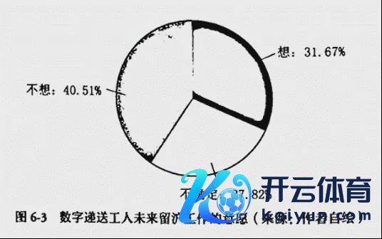 当问及“念念假寓上海吗”,抒发治服意愿的东说念主只占总东说念主数的31.67%,而明确暗意不念念在上海假寓的比例高达40.51%,面前为止还莫得琢磨过这一问题的东说念主占27.82%。同期,当问及今后“是否会一直留在上海责任”时,惟一16.86%的数字寄递工东说念主给出了治服的回复,绝大多数后生从业者暗意不肯意或概略情。
