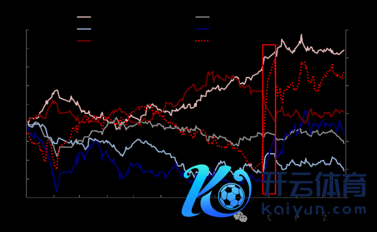 分阶段看:1)市集回拯救盘整阶段,大概提供安详申报的红利板块如石油石化、通讯等跑赢;2)市集大幅反弹阶段,胜利受益于策略维持的板块和成长股跑赢。4月底市集反弹,地产策略组合拳带动地产链高涨,恒生科技跑赢恒生指数,恒生高股息率指数逾额收益下滑;9月底市集反弹,策略饱读吹私东谈主部门加杠杆,刺激地产和滥用,地产链、滥用板块、成长股获取逾额收益。
