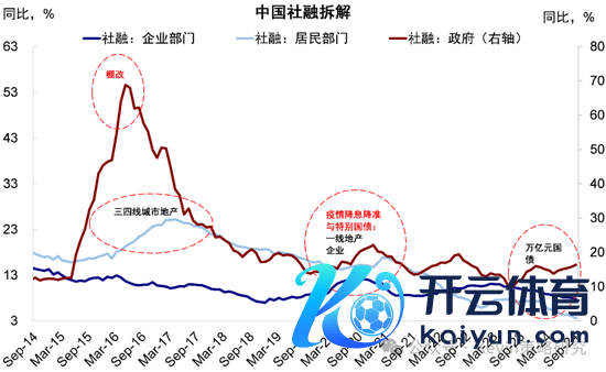 图表:政府部门社融增速9月回升至16.4%,但私东谈主部门社融增速9月下滑至6.2%,住户下滑更快
