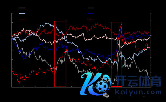 图表:恒生指数的高涨主要受4月底和9月底两轮高涨推动,依靠情绪扶助下的风险溢价回落