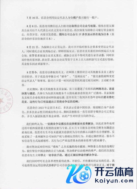 近期,因范念念奇先生的个东说念主步履激发的系列事件,已对公司通俗主意、市集次第和推动、职工通俗生计酿成严重影响。为爱戴各方权益,现本着客不雅、端庄的气派,将事实经过诠释如下。
