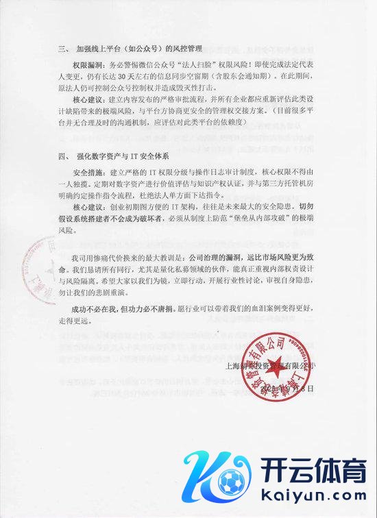 尽管这次事件已对我司酿成了不成逆的影响与吃亏,咱们仍但愿以此为机会,推动行业对里面治理与风险驻防的潜入念念考。剥肤之痛,咱们积存本身阅历,忽视以下几点警示与建议,供同业参考鉴戒: